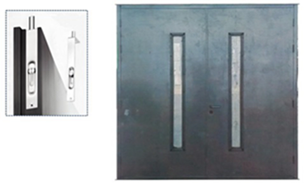 (2)【图示11】为双扇防火门的检测照片:一侧门扇用插销固定,另一门扇通过锁舌固定于锁孔;