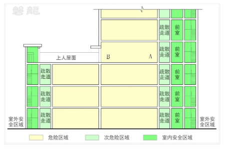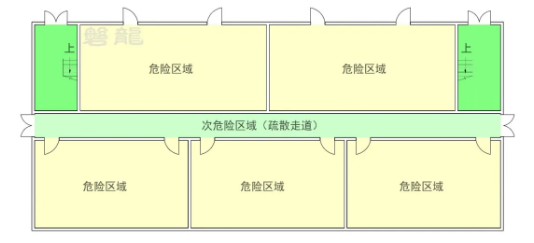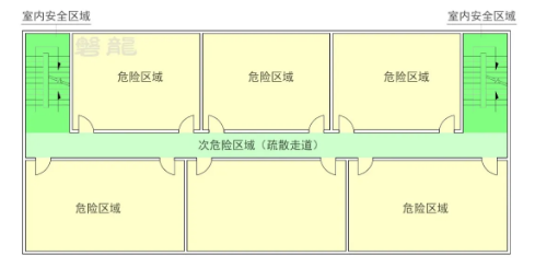 (2)次危险区域:疏散走道;