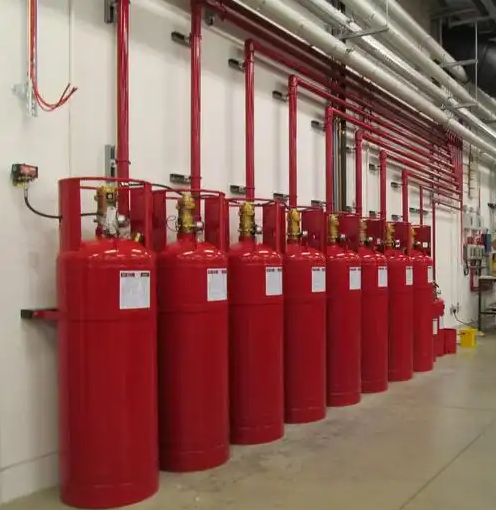1. 系统概述 在外贮压式气体灭火系统中,灭火剂(如HFC-227ea)与驱动气体(氮气)分别储存在灭火剂瓶组和驱动气体瓶组中。火灾发生时,驱动气体瓶中的氮气释放进入灭火剂瓶组,推动灭火剂通过管网输送至防护区,实现快速灭火。 与内...